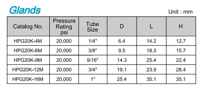 | 1/4" 20000 PSI Gland 316 Stainless Steel Medium Pressure Fitting | HPG20K-4M-S316 | Not In Stock | 3/6/2026 |