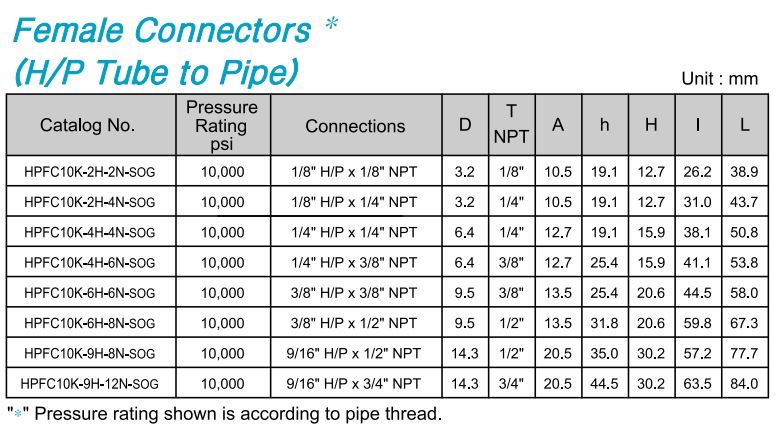 Product Sub Class Female Connector (H/P Tube to Pipe)