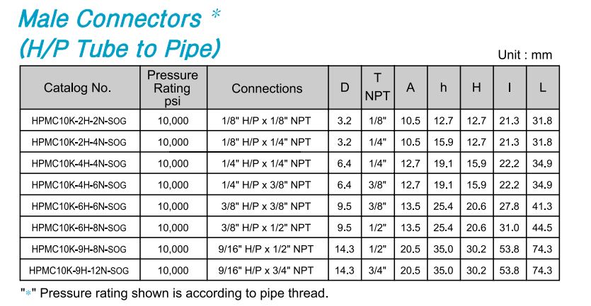 Product Sub Class Male Connector (H/P Tube to Pipe)