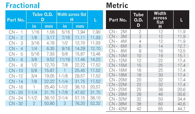 Size 1/16", 1/8", 3/16", 1/4", 5/16", 3/8", 1/2", 5/8", 3/4", 7/8", 1", 1 1/4", 1 1/2", 2", 3mm OD, 4mm OD, 6mm OD, 8mm OD, 10mm OD, 12mm OD, 16mm OD, 20mm OD, 22mm OD, 25mm OD, 32mm OD, 38mm OD, 50mm OD